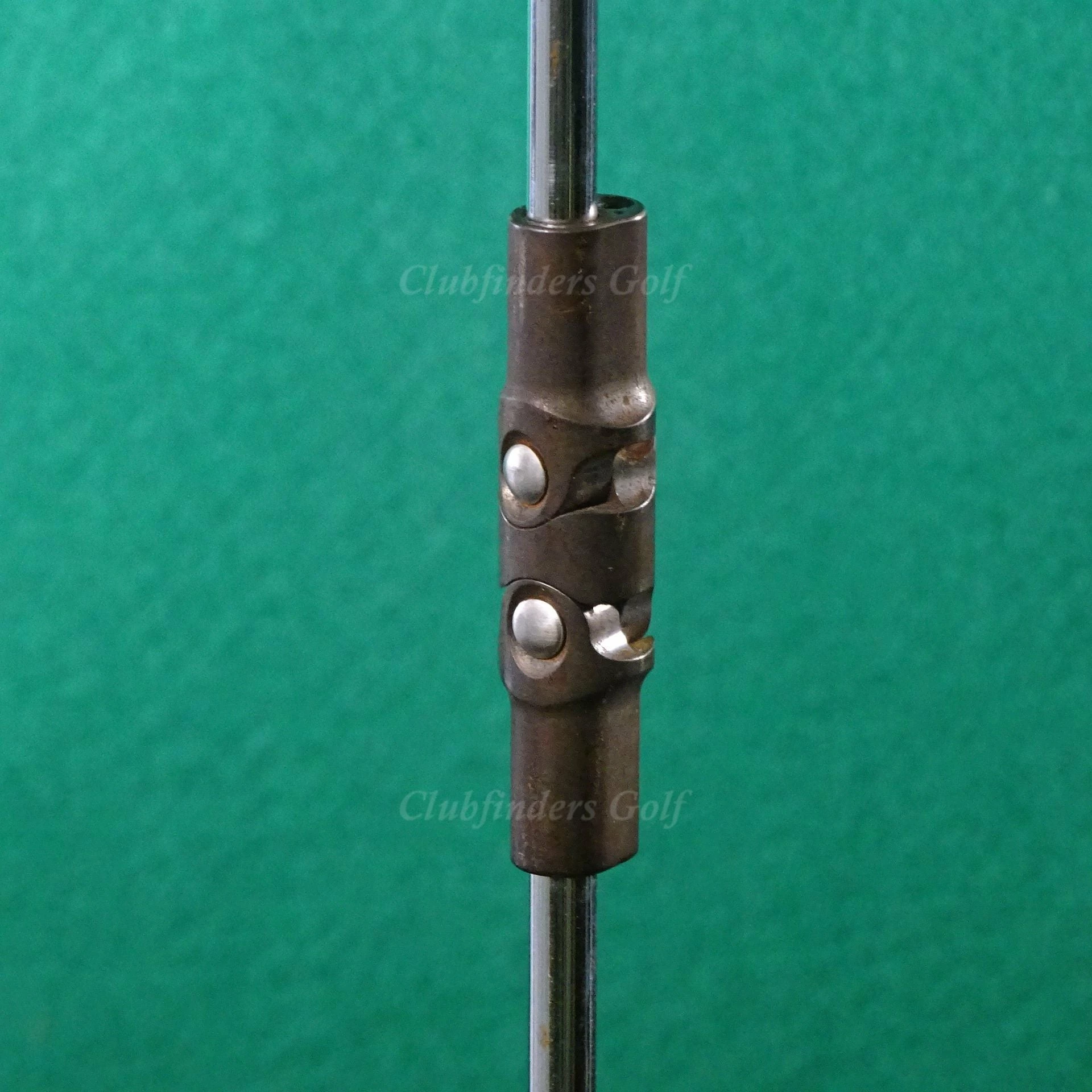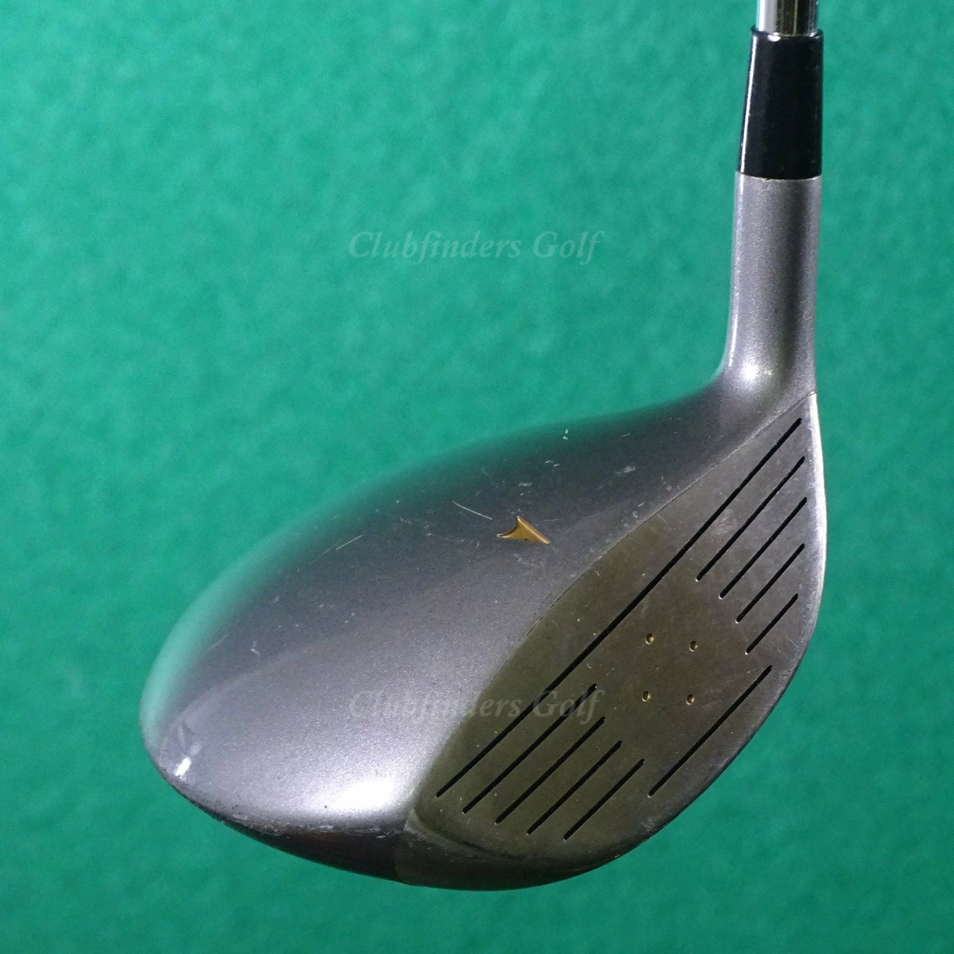 Play and bag marks, several nicks and scratches to the clubhead, light scuffing to the sole, oxidation to the dual hinge, but the face is in good condition. The grip should be replaced. This club is significantly under standard length for a Medicus driver, and higher lofted, so this might be designed for a junior player.