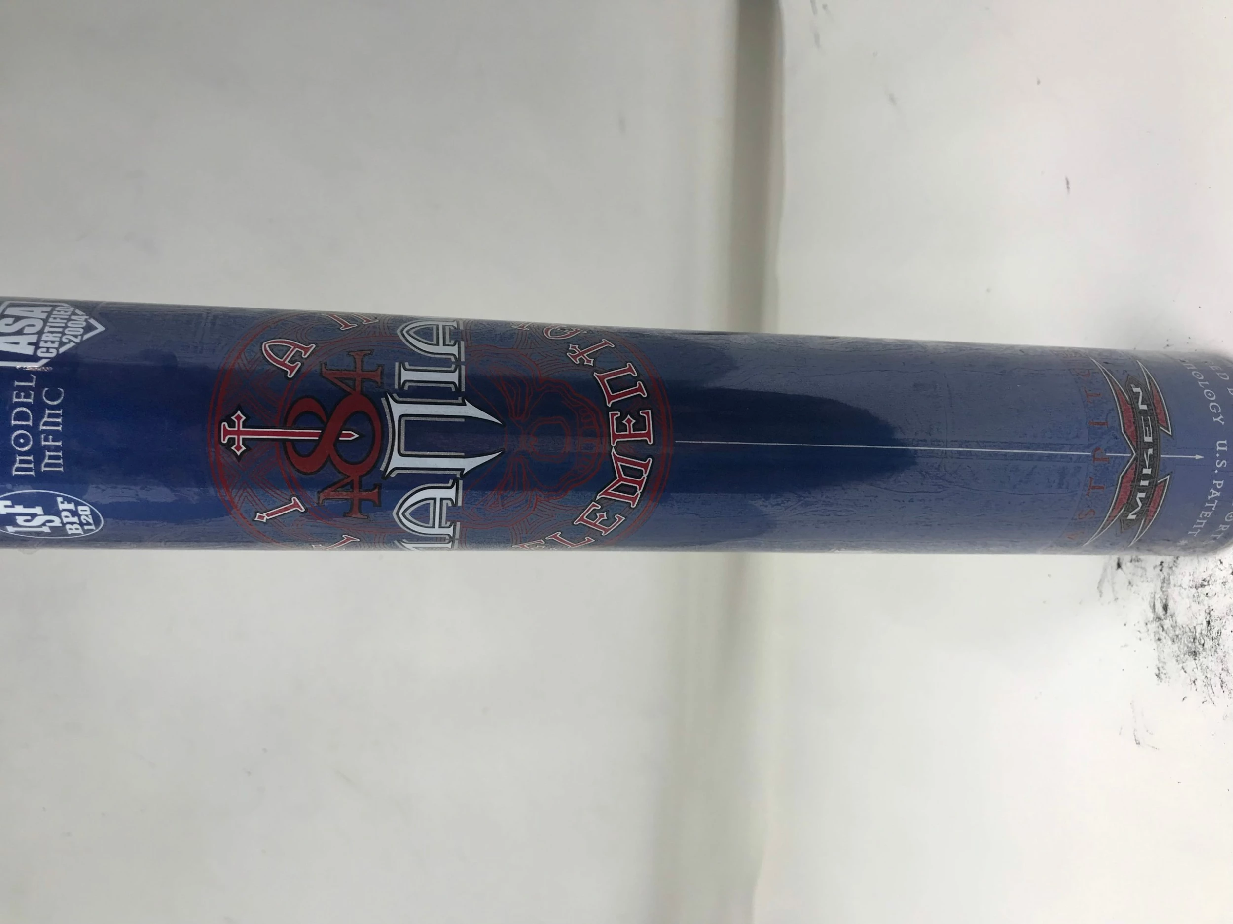 - ASA 2004, ISF, USSSA (no stamp) certifications written on bat