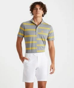 A MODERN TAKE ON A CLASSIC STYLE, THE OFFSET STRIPE POLO IS A BEST SELLER FOR ITS UNIQUE LOOK PAIRED WITH BREATHABLE TECHNICAL PIQUÉ FABRIC. FEATURING A MODERN SPREAD COLLAR FOR AN ELEVATED LOOK AND A TENNIS TAIL HEM FOR A NOD TO CLASSIC STYLE. G4MS23K182A
