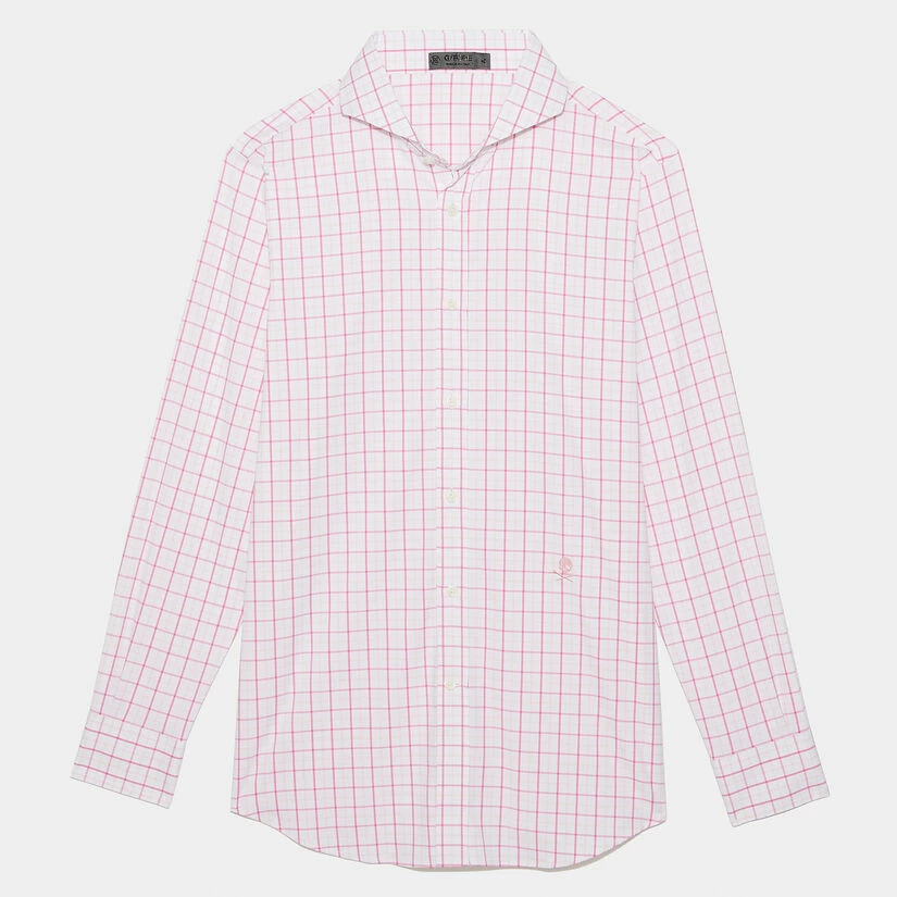 TATTERSALL PLAID MODERN SPREAD COLLAR NYLON WOVEN SLIM FIT SHIRT