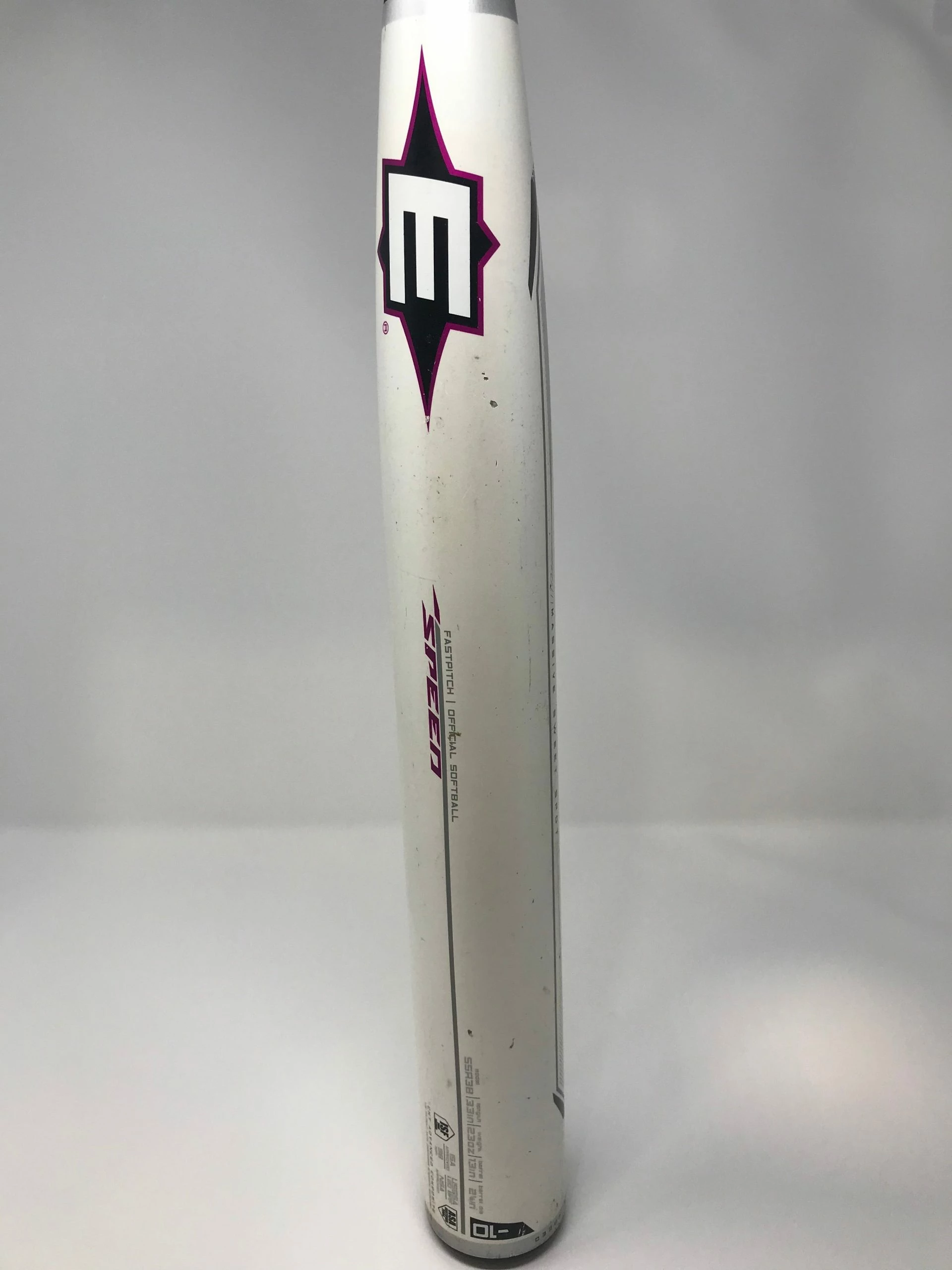 SKU: 1585379770404 Category: Bat Tags: -10, 2011, Composite, Condition: See Pics! Few scratches and cleat marks and a newe grip, Fastpitch, Feed-cond-new, No USSSA 1.20 BPF Stamp, Purple/White, Size: 33/23, Softball